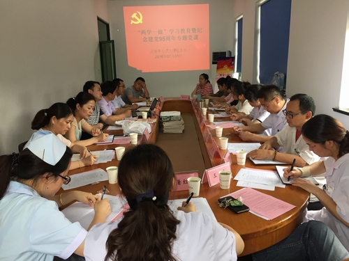 7月1日,为纪念建党95周年,持续深化“两学一做”学习教育,武康中心卫生院在上柏分院召开“两学一做”学习教育暨纪念建党95周年专题党课,大会由支部书记罗建良主持,全体党员参加。