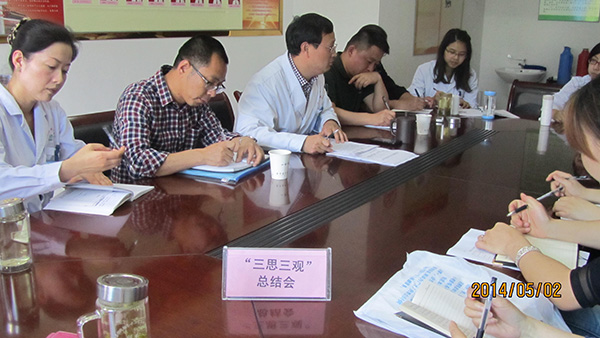 会议由医院支部书记徐洪昌主持,全院党员和中层干部参加了会议。会议徐书记通过四方面对医院此次“三思三观”活动情况进行了总结:1、丰富理论学习促真知;2、开展实践教育促真学。3、组织专题讨论促真思和4、开展职工座谈促实效。他表示通过党员干部上交的体会文章,体现了党员和干部积极查找问题,修正问题,并通过党支部开展的职工座谈会,切实解决了突出问题,使得此次医院“三思三观”活动真正做到深刻、有效,促进了医院党的群众路线教育实践活动的开展。