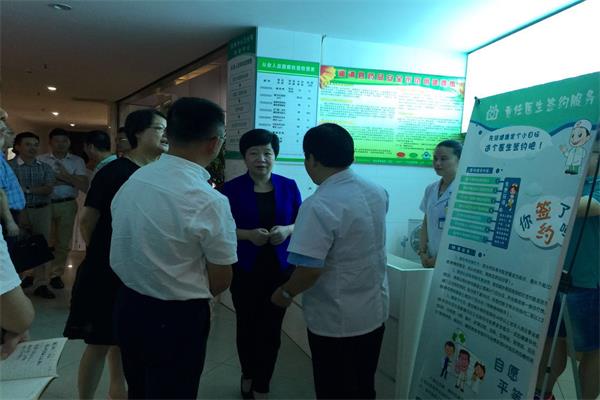 调研组实地察看了武康镇中心卫生院健康体检中心、签约服务咨询台、健康小屋、预防接种门诊等科室,卫生院院长褚明华随同作详细介绍。王县长一行深入了解了责任医生签约服务工作进展、基本公共卫生服务项目执行情况、预防接种及疫苗流通、冷链监控运转等情况。王县长对武康镇中心卫生院的一站式健康体检和签约服务工作给予了充分肯定,她指出:要进一步强化管理,积极探索工作新方式、新途径,有力促进社区卫生服务工作的深入开展,真正让基层百姓在家门口享受优质、便捷、高效的医疗卫生服务。