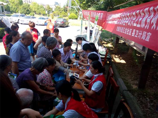 为进一步提高城乡居民对基本公共卫生服务项目的知晓率和满意度,结合国家基本公共卫生服务项目宣传月、7.28世界肝炎日、健康社区等主题活动,7月22日上午,由县卫计局、县爱卫办、县疾控、武康街道、武康中心卫生院、五龙社区居委会等多部门联合组织,在五龙社区卫生服务站门前举办大型公益宣传咨询活动。