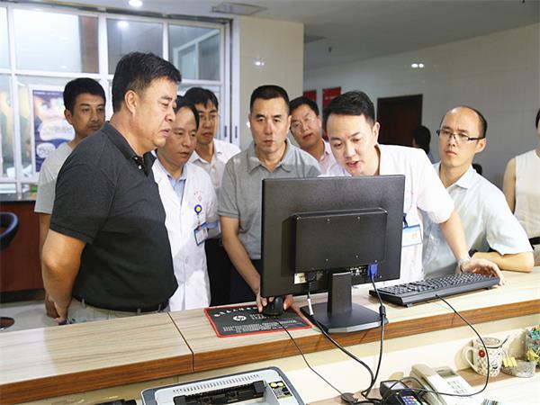 8月9日下午,中残联党组成员、人事部主任相自成一行来武康镇中心卫生院调研残疾人信息化建设。省残联副理事长吴一农、县委副书记敖煜新、县残联理事长杨会荣陪同调研。